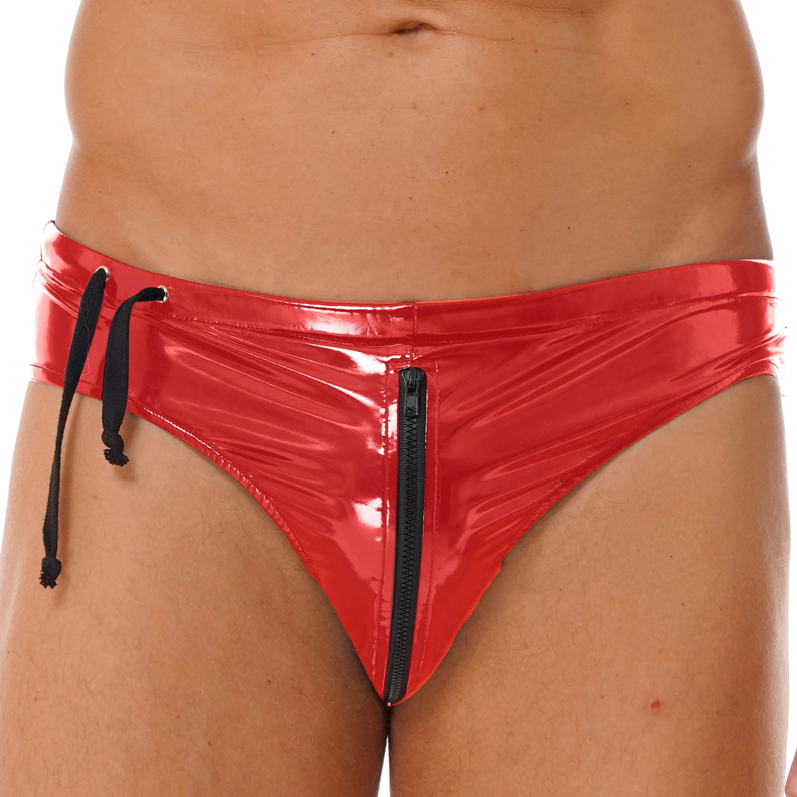 Man Latex Lingerie Underwear Drawstring Low Waist Zipper Briefs Wet Look Patent Leather Underpants Club Stage Show Sexy Costume