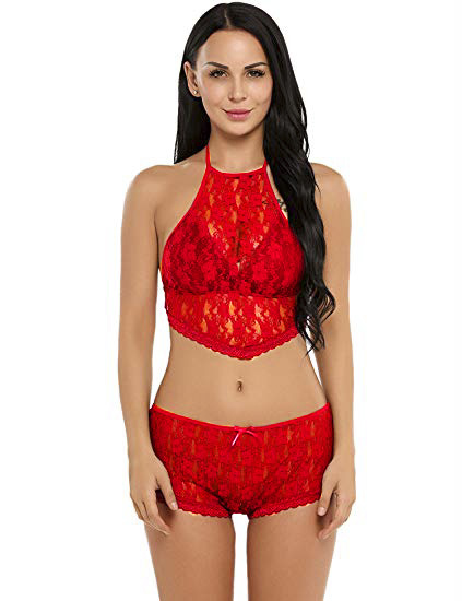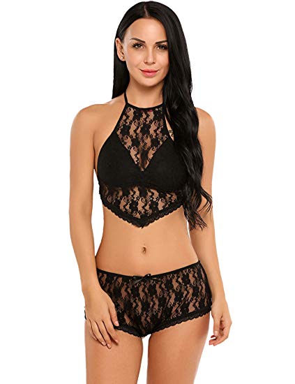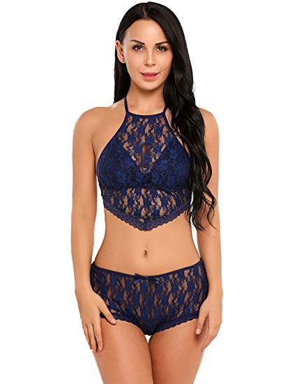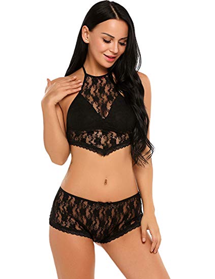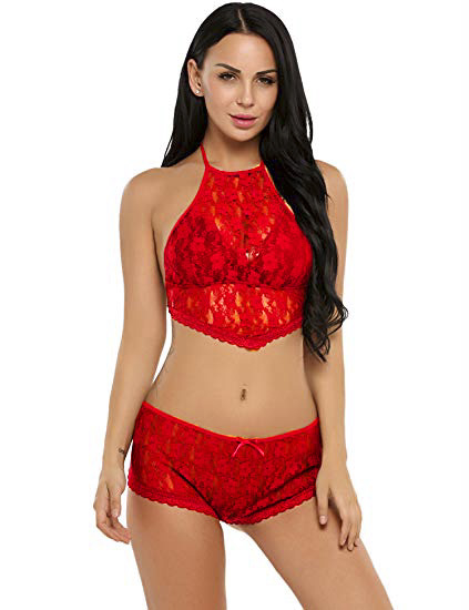 女士性感透視文胸套裝異國情調內衣鏤空蕾絲文胸和丁字褲套裝