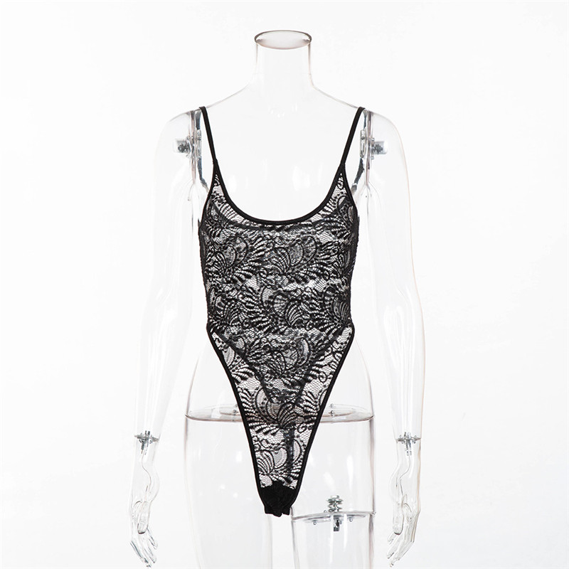 緊身衣褲女性身體性感女性; 女士泰迪熊內衣 Spaghetti Strap 黑色花卉蕾絲