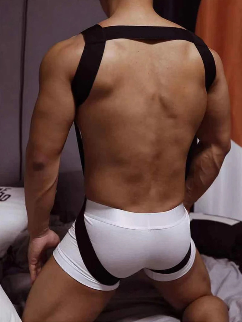 / CLEVER-MENMODE 性感內衣男士吊帶胸部連身衣鏤空束縛彈性陰莖環孔情趣服裝